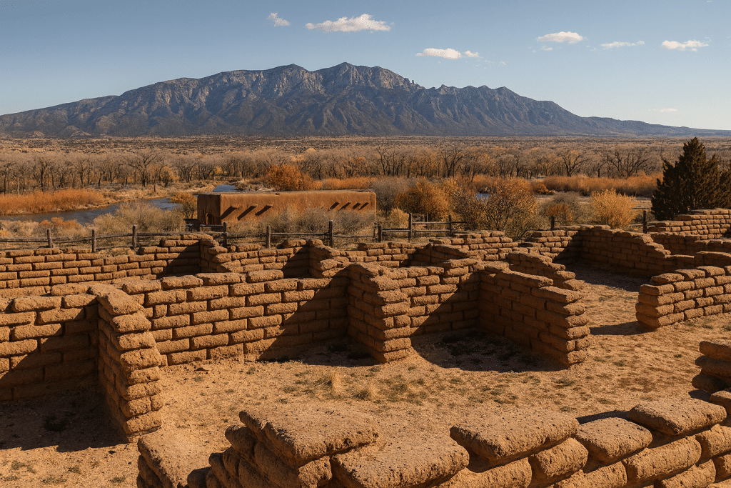 The site includes a visitor center with exhibits and a short trail through the pueblo ruins. Educational programs and guided tours are often available. The location also offers beautiful views of the Rio Grande Valley and surrounding mountains.