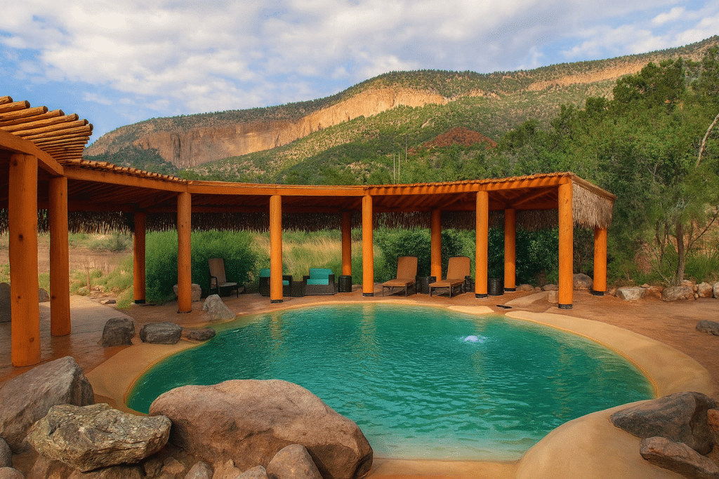 Jemez Springs sits nestled in the mountains about 45 minutes from Rio Rancho, making it one of the most popular New Mexico day trips for good reason. This small village is famous for its natural hot springs and stunning mountain scenery that feels worlds away from city life.