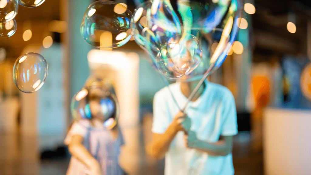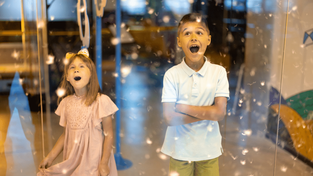 Some of the most active exhibits involve air, water, and bubbles. At the giant air table, kids can float scarves and see how airflow moves objects. The bubble station lets them make large bubbles and learn about surface tension without needing a science textbook.